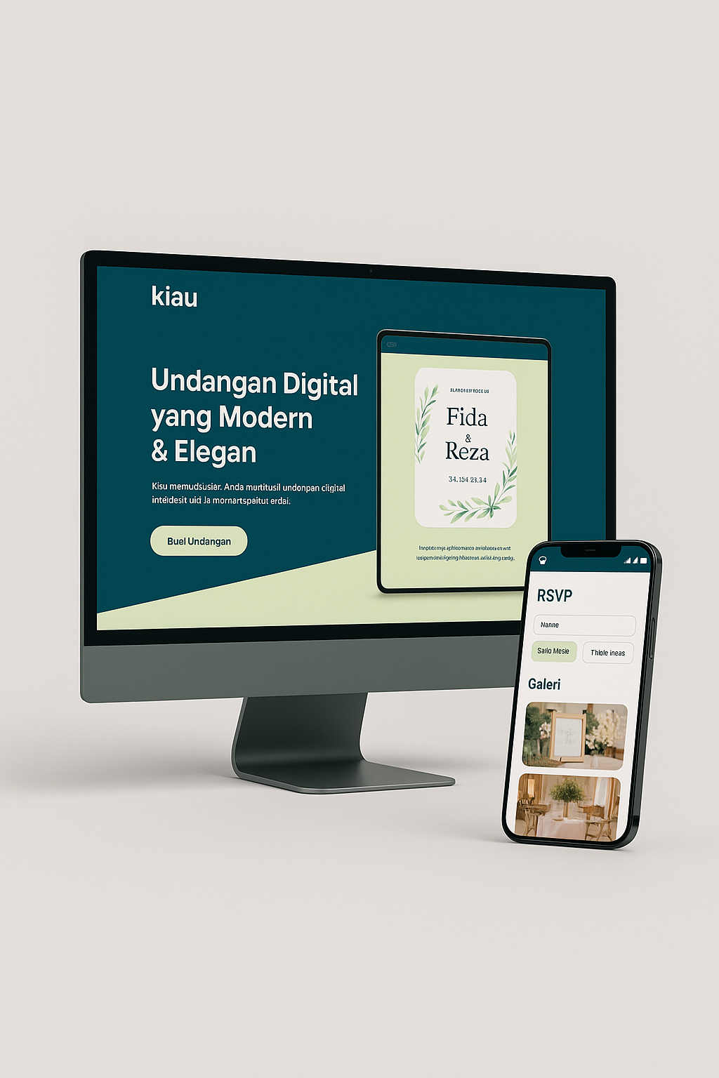 Kiau hadir untuk bantu Anda bikin undangan digital yang nggak cuma cantik, tapi juga praktis dan berkesan!